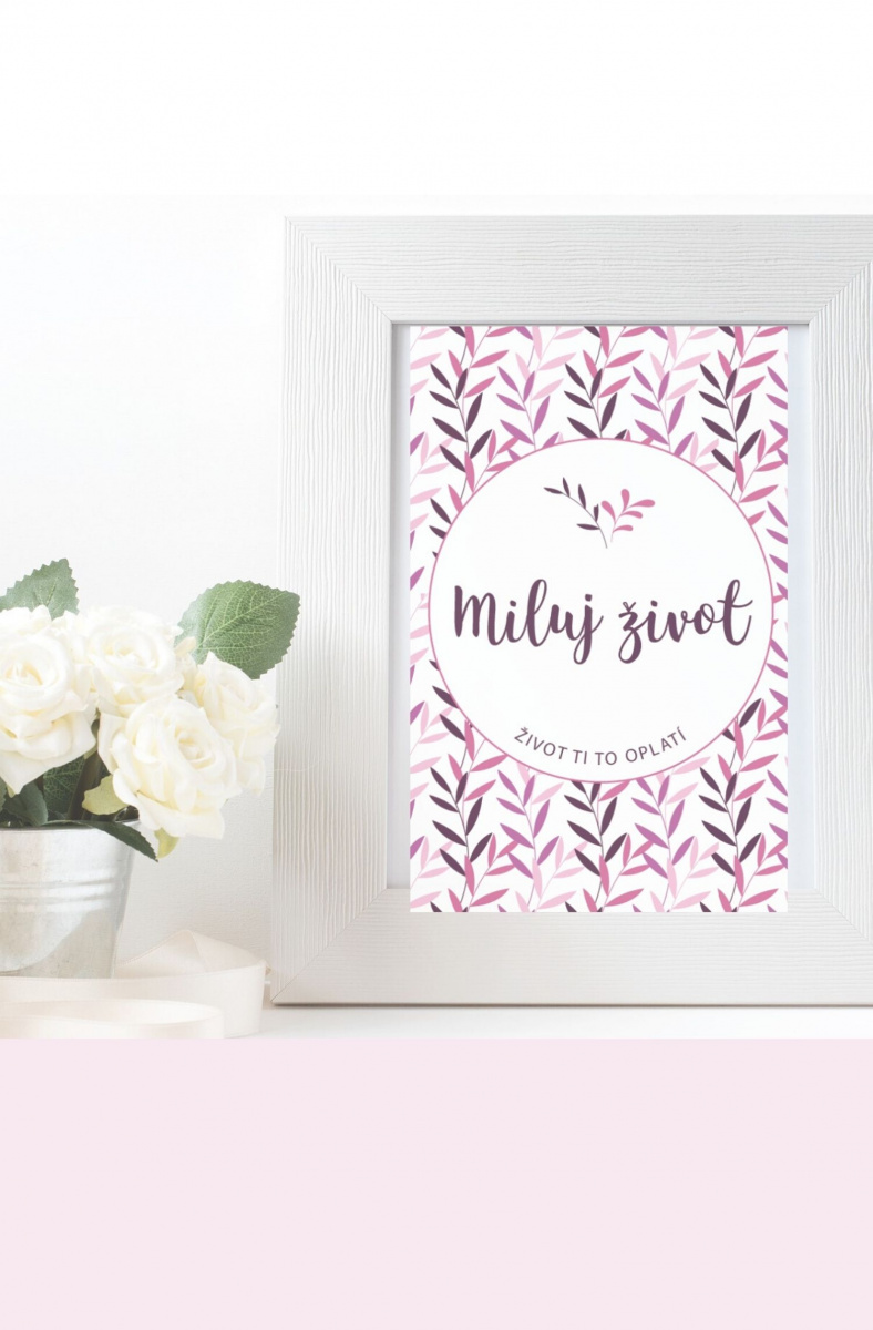 Plakát Miluj život je na kvalitním papíru A4 s vyšší gramáží, tedy kromě v rámečku mu to bude slušet i jen tak ležérně opřenému na poličce.
